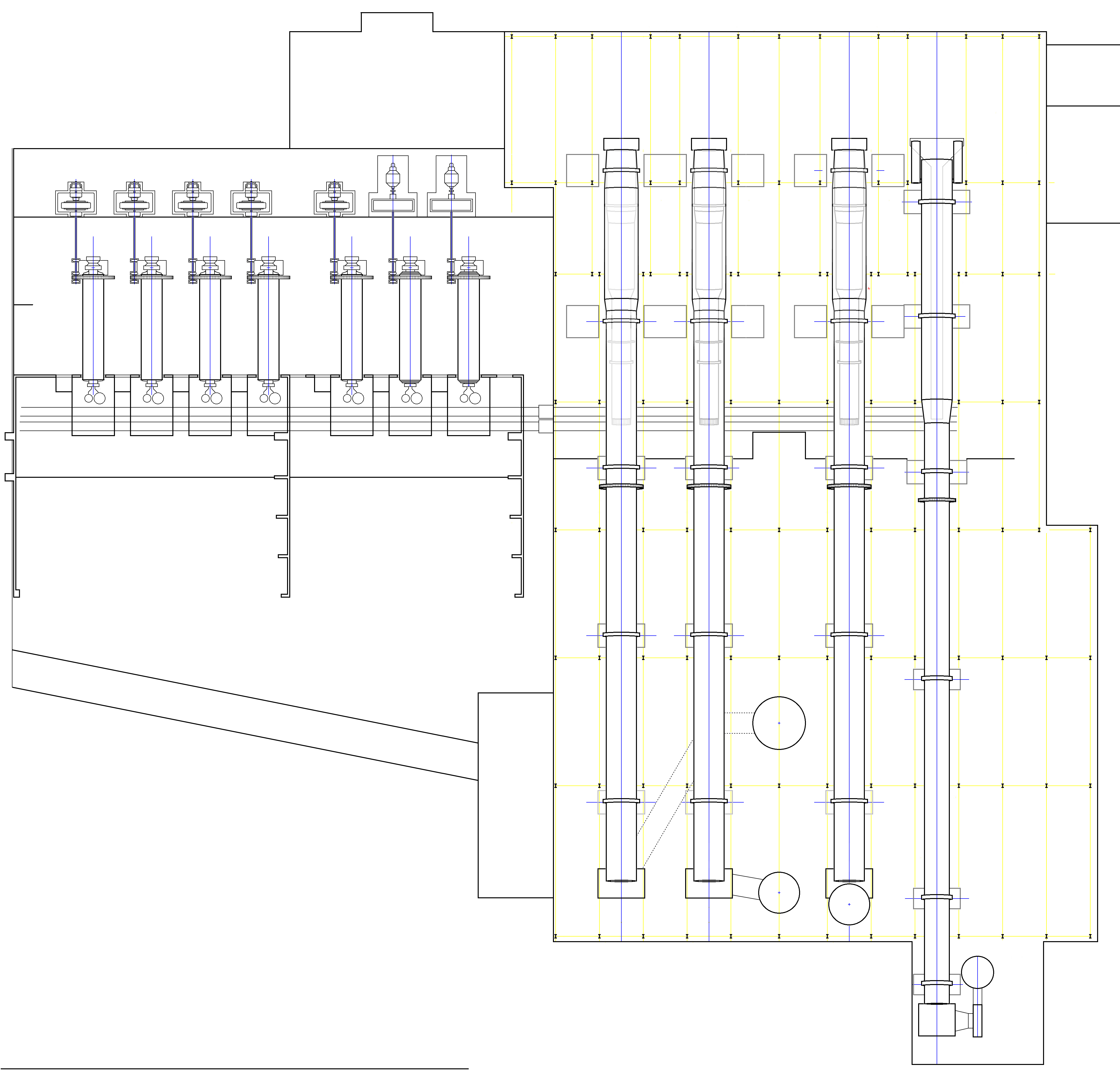 Bevans old cooler area A chaotic scene during the 1925 reconstruction shows many features of the earlier plant. On the extreme right and left are still-standing static kiln blocks. On the right are the old drying flat arches re-used as the firing floor. On the left are the chutes from the kilns to the coolers. The spring of the recently-demolished drying flat arches can still be seen above them. On the right, six of the fine coal hoppers remain. To the rear is the forest of kiln house stanchions with their (mostly) 15 ft spacing that was retained for the later plant, effectively determining the placement of the later kilns. The rear support beds and drives of the new kilns were placed within the building; the third piers were placed just in front of the vertical wall, with the clinker conveyor just in front of them. In the foreground, the bases of the coal mills are being cast.