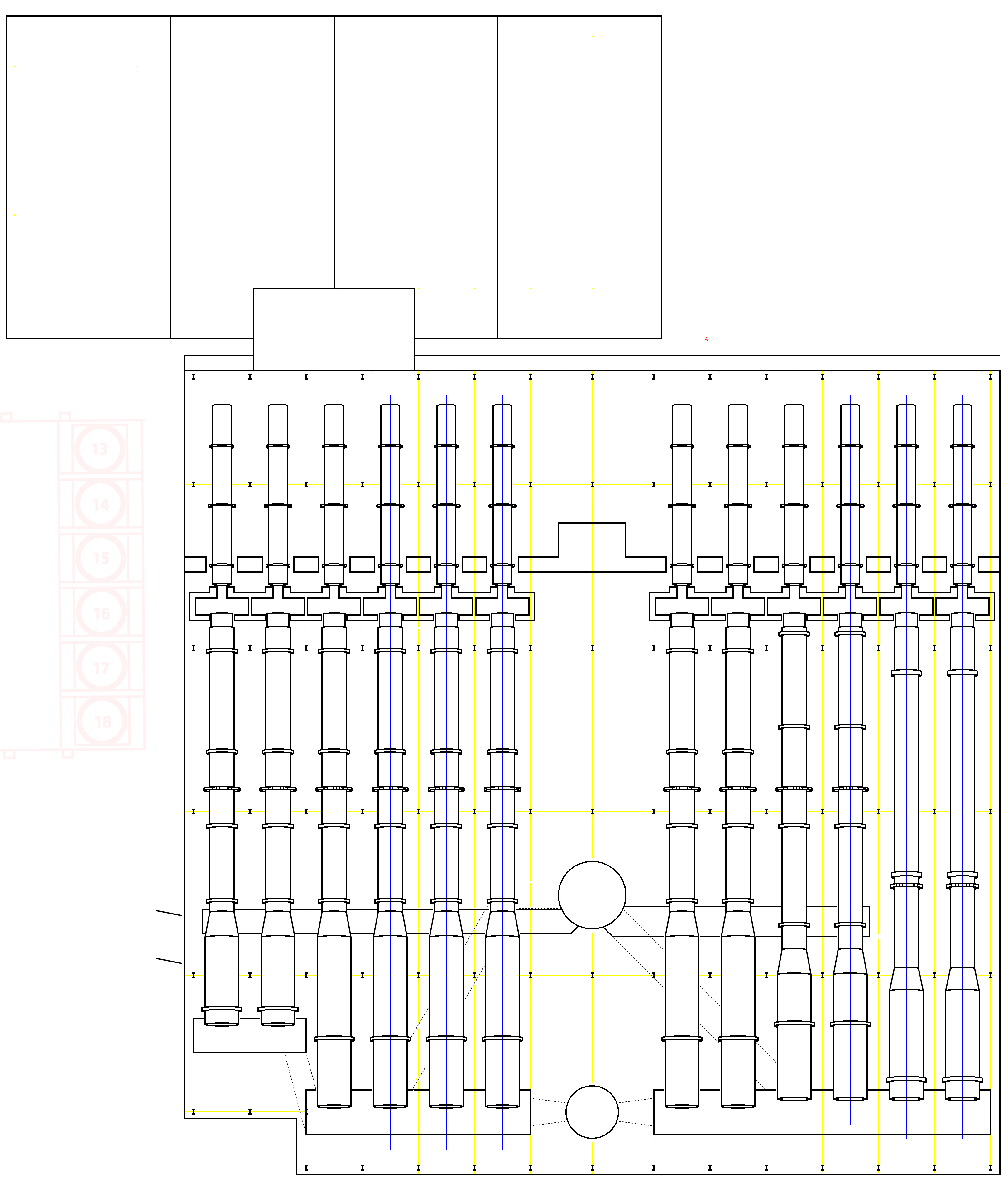 Note: the history of the A-series kilns is poorly recorded. The managers' conference notes of the 1920s say there were two 110 ft long and ten 130 ft long. Jackson says there were eight 90 ft kilns, later extended to 132 ft, and four later 130 ft long. Percy Taylor, who was engineer at the plant from 1898 to 1926, says the original eight were 70 ft long, later extended to 130 ft, and a further four of 130 ft were added "between 1906 and 1913". Fletcher's notes on the APCM board minutes say that the 8 original kilns were extended from 80 ft to 130 ft and two of 120 ft were added, the other two not being mentioned. Which statements, if any, are reliable remains for the present anybody's guess. Someone out there has the plans, which do not lie. The following is a "best guess".